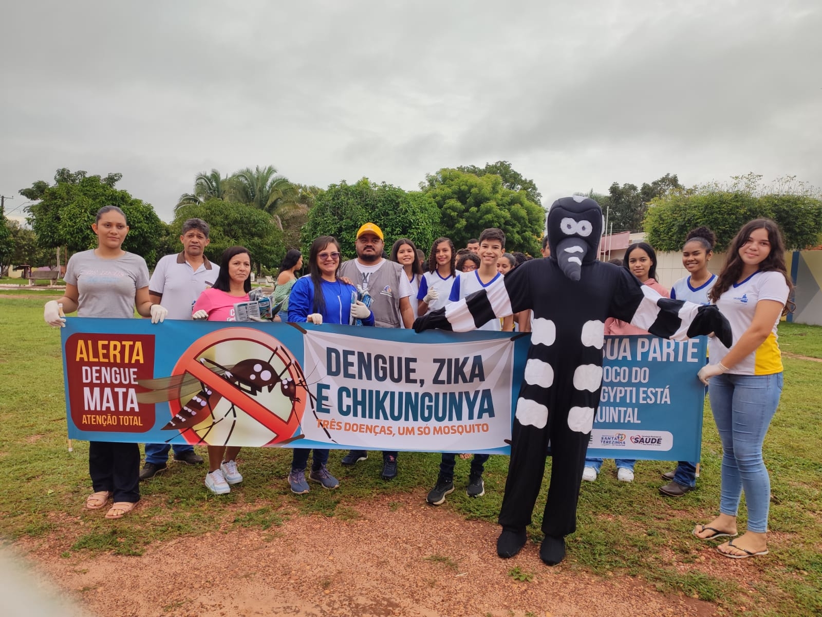 Prefeitura Municipal de Santa Terezinha do Tocantins, através da Secretaria de Saúde e em parceria com a demais Secretarias do município, Escolas Municipais, Colégio Estadual José Feliciano Ferreira (Professores e Alunos) e comunidade em geral, realizou no dia 24 de março de 2023, ações voltadas ao combate do mosquito transmissor da Dengue, Zica e Chikungunya, em pontos estratégicos da cidade. A atuação é preventiva, com orientações aos moradores em visitas domiciliares, bem como distribuição de material informativo e educativo, um dos pontos fortes da ação foi a caminha nas ruas da cidade com alunos, professores, equipe da saúde e demais colaboradores, através de mutirão, onde foi realizado a distribuição de sacos para coletas dos lixos e entulhos pela equipe de limpeza (Secretaria de Meio Ambiente). A ação teve como objetivo identificar a existência de possíveis focos e criadouros do mosquito Aedes Aegypti e eliminá-los, caso fosse identificado algum foco, os agentes iriam realizar imediatamente o tratamento com larvicida. Os profissionais ainda orientaram os proprietários a usarem solução de hipoclorito de sódio na água, o que é eficaz na eliminação de larvas do mosquito Aedes Aegypti.